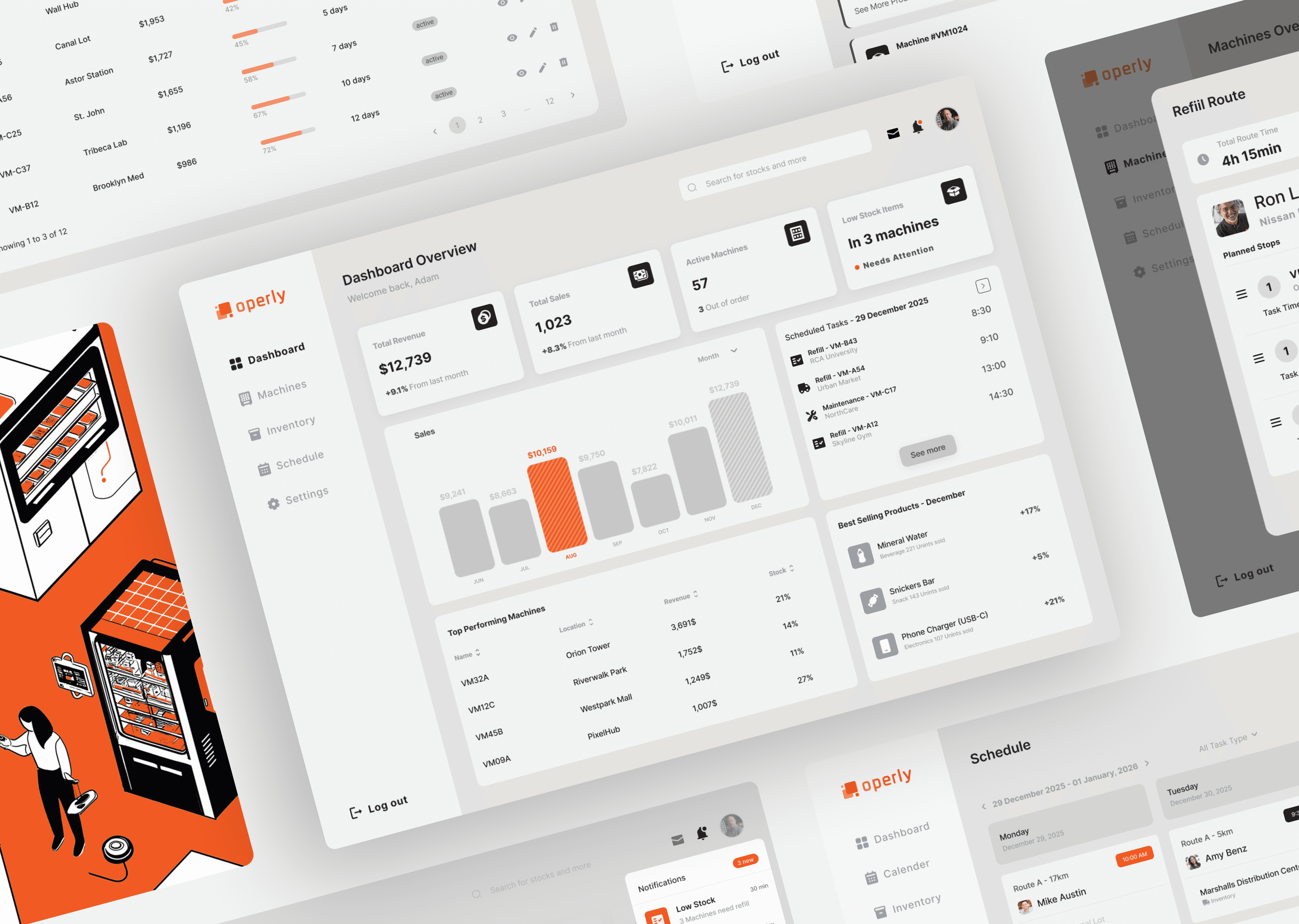 Operly is a smart vending management platform that helps operators and managers handling multiple locations monitor machines, plan refill routes, and manage stock in real time. Key features include live inventory tracking, AI-powered refill planning, and a centralized dashboard to streamline operations. The platform aims to reduce wasted trips, prevent stockouts, and boost sales across all locations.
